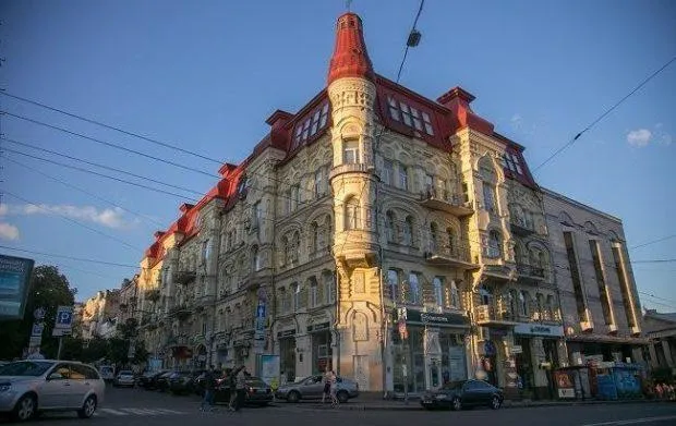 Цей будинок звели у 1902 році за проєктом архітектора Карла Шимана. На той час ця будівля стала найвищою в Києві (42,5 метра). Архітектурний стиль – неоренесанс з елементами раннього модерну. За часів панування радянських окупантів у Києві будинок довели до стану розрухи, і лише дивом його вдалося врятувати, запросивши відповідних фахівців.