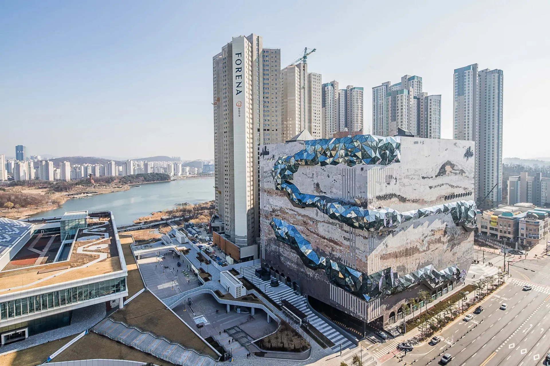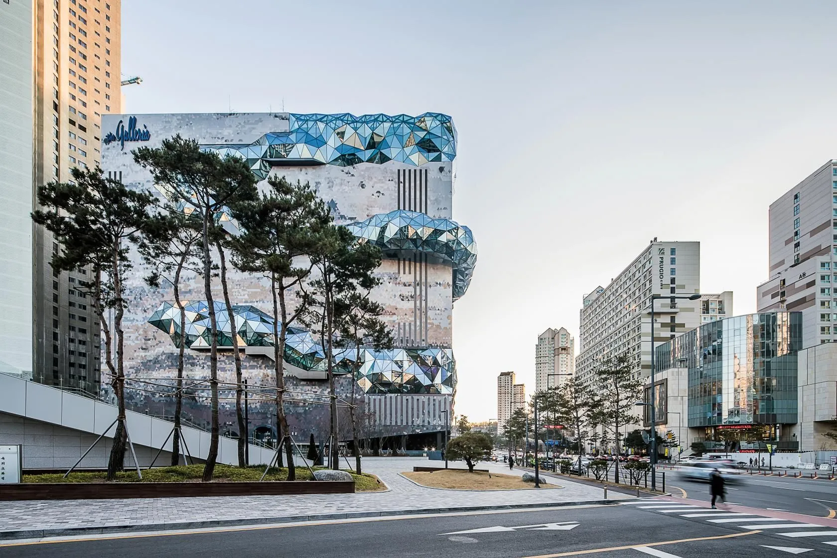 Розташований лише в 40 хвилинах їзди від Сеула, універмаг Galleria привертає увагу своїм незвичним фасадом. Будинок у формі куба "одягнений" у мозаїчні трикутники з каменю. Поєднання бежевого, коричневого та земляного кольорів створене для того, щоб споруда виглядала як кам'яна плита або переріз землі.