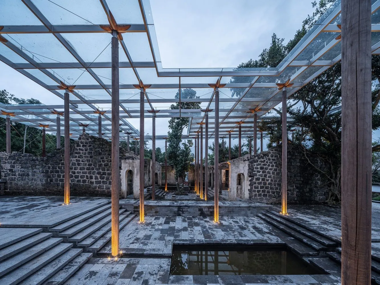 Історичний комплекс розташований у селі Лонджі – одному з вулканічних кам’яних сіл на півночі Хайнаня. Від колишнього славного історичного місця залишилася руїна та розбиті стіни. Архітектурна студія ZSZY, якій належить проєкт реконструкції, вирішила не відбудовувати комплекс повністю, а додати скляні конструкції та підкреслити збережені стіни.