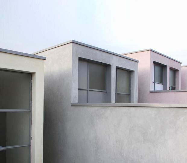 Житло з такими розмірами – це зовсім нова типологія містобудування. Як результат, ці будинки мають екстер'єри, які виготовлені з простих кольорових штукатурок.