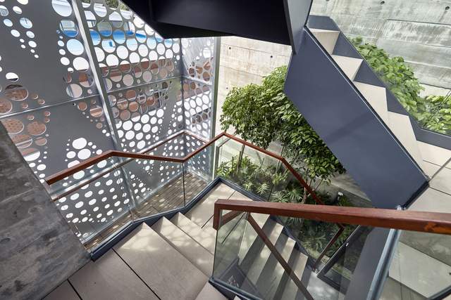 Подвійний фасад допомагає регулювати температуру всередині будинку. Він також розроблений з можливістю повністю відкритих розсувних дверей для поперечної вентиляції та напіввідкритих варіантів відмикання, пише видання Archdaily.