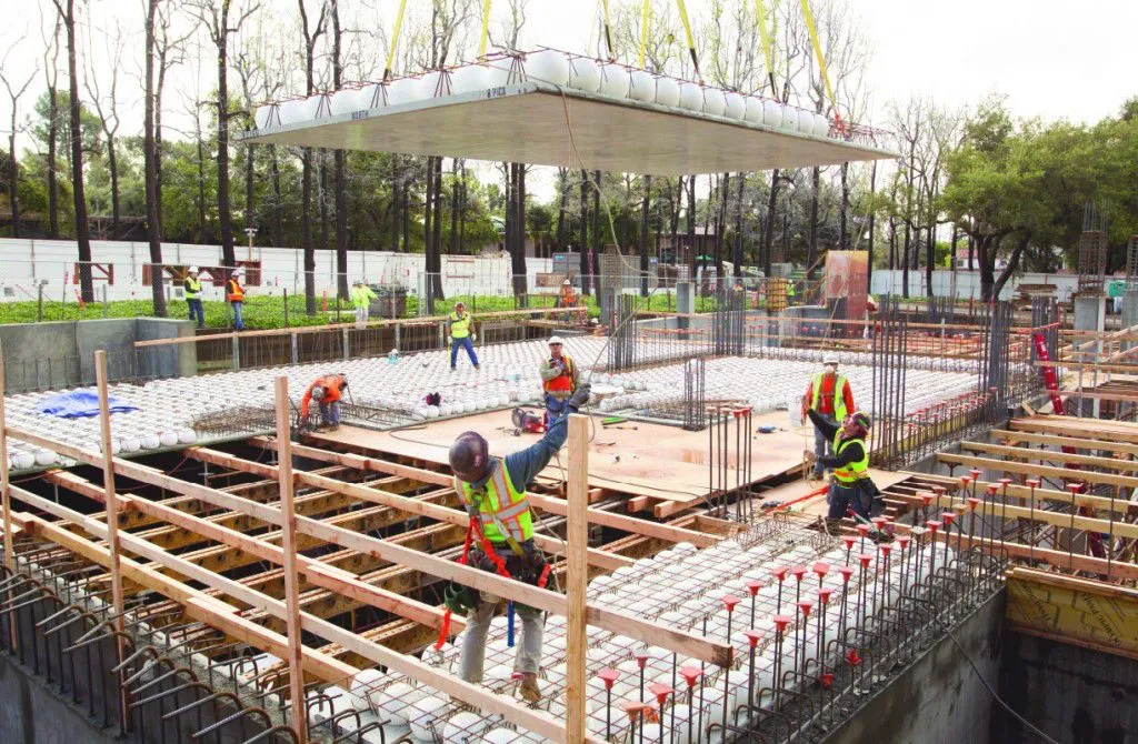 В большинстве бетонных плит оставляют полости, чтобы сделать его более долговечным. Впрочем несколько лет назад Йорген Бруниг разработал новый тип двухосной бетонной плиты.