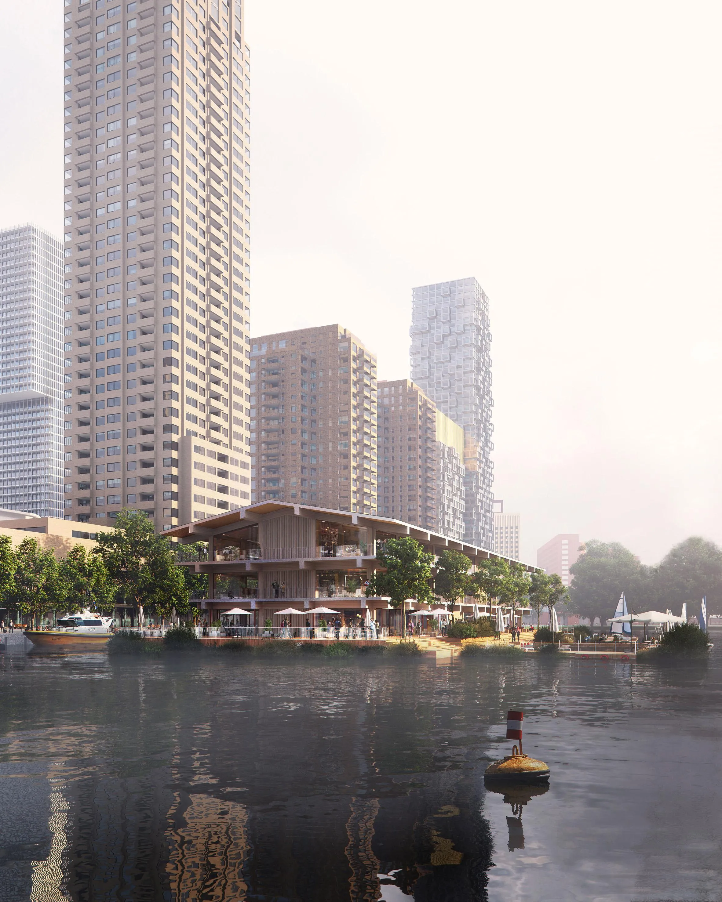 Проектирование плавучего офисного здания было очень сложной задачей, и мы подошли к ней комплексно. Используя воду из Рейнхейвена для охлаждения и крышу офиса в качестве крупного источника энергии, здание становится действительно автономным. Его конструкция выполнена из древесины, которую легко можно демонтировать и использовать повторно,