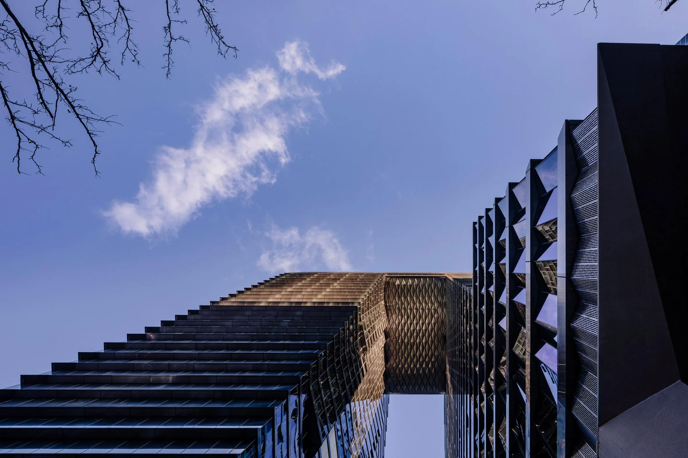 Каждая из башен здания имеет высоту 164 метра и состоит из 34 этажей, объединенных на вершине восьмиэтажного мостом размером 14 метров в длину.