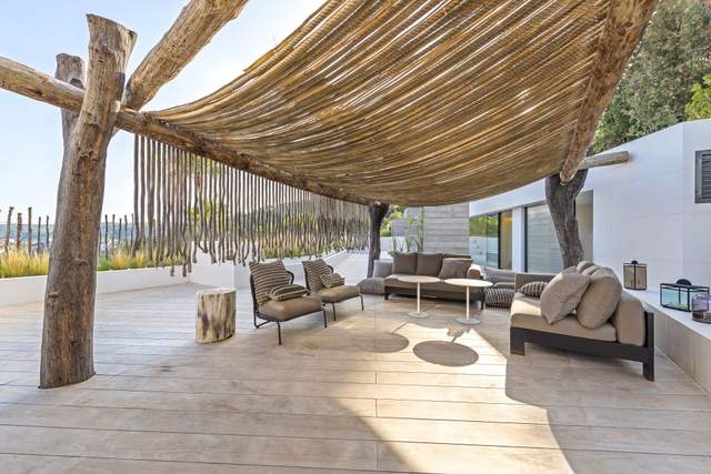 Нескінченна тераса, оточена природним ландшафтом, ніби запрошує насолодитися незабутнім заходом сонця. Прагнення привнести середземноморський пейзаж у будівлю покращує зв’язок між інтер’єром та садом. Зони відпочинку на відкритому повітрі стають продовженням вітальні.